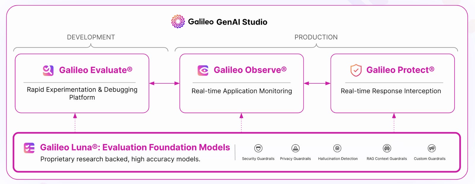 Galileo: A modular platform with built-in guardrails, real-time safety monitoring, and custom metrics. Finds its sweet spot with RAG and agentic workflows.